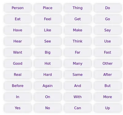 There's a game my friend Spencer introduced me to called "Person Do Thing". The basic premise of the game is one person will have a random word, which they have to describe to other players. The catch is they can only use 40 basic words to do this, as listed below. For example, if your word was "intuition", you might say "Person do thing fast and good, person no think". Other players may make guesses at what the word might be, and you can continue to narrow the word down by providing additional clues.